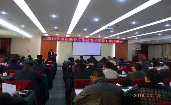 3月18日,我市召开商务工作会暨电子商务推进会,会议总结回顾了“十二五”期间商务工作,科学谋划“十三五“商务发展总体思路,安排部署2016年全市商务工作,同时积极推进电子商务工作。