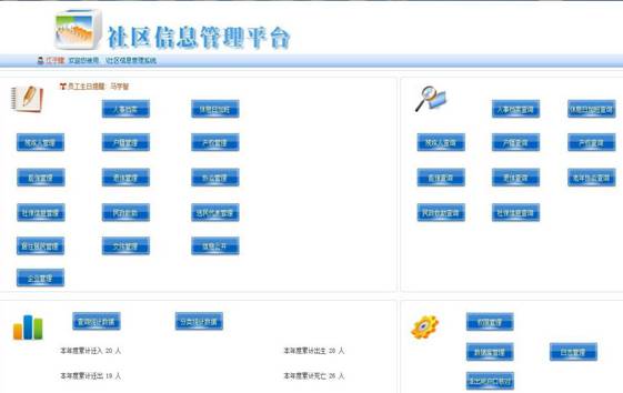 保山市社区信息管理平台是一个典型的数据库开发应用程序,是针对社区内业管理办公自动化设计的,该系统由户籍管理、人事管理、公共信息管理等功能组成,涵盖了户籍、人口、社保、医保、低保、人力资源、选民统计、统计报表、社会化管理、矛盾纠纷、产权管理、民政救济、残疾人管理和工、青、妇、老协群团组织等27个模块,系统与公安、社保、住建等部门相连,在优化服务流程的基础上,为这些部门的数据采集和更新提供了可靠保证。