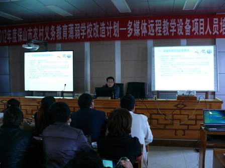 | Ø 薄改计划为农村配置多媒体远程教学设备 保山实施薄改计划,配置多媒体远程教学设备,大幅度提高远程教育资源利用效益。为农村义务教育薄弱学校每个班级配置一套多媒体远程教学设备,主要包括电子白板、多媒体展示台等较为高端的远程教学设备,满足教师运用信息化手段教学的需要,以信息化手段为核心,推进教育均等化。 根据《云南省电化教育馆关于2012年云南省农村义务教育薄弱学校改造计划——多媒体远程教学设备项目人员培训的通知》(滇电教〔2012〕49号)的要求和保山市的实际情况,保山市教育局于2014年7月7日—15日分别在保山和腾冲举办了三期项目人员培训班。对全市5县(区)109所项目学校校长、骨干技术人员和市县(区)电教、教研部门技术人员共计240人进行了培训。 通过培训,使参加培训的人员在项目建设与管理、多媒体技术理论和应用方法、多媒体教育资源开发与利用、多媒体教学与教学改革等方面有了新的认识和提高,初步掌握了电子白板的使用和维护技术。对项目学校今后在设备的管理和使用、充分发挥项目设备的使用效益、充分利用优质教育资源开展教学活动等方面起到了指导作用。  图1. 电子白板的使用培训  图2. 设备安装的培训 施甸县太平镇青龙山小学(教学点),在远程教育设备未装备前,由于学校教师构成复杂(有代课教师、年龄偏大等),致使音乐、美术学科未开设,但远程教育设备装备后,这两门学科开设起且学生的学习积极性也得到了较大的提高。 Ø 教学点数字教育资源全覆盖项目 2014年8月20日-25日,我市在保山学院举办了“国培计划(2014)”——教学点数字教育资源全覆盖项目教师短期培训班,对全市51所项目校的教师、项目校所在乡镇的中心小学和村完小一线教师、市县区电教人员共140多人进行了培训。 此次培训邀请了云师大信息学院副院长刘敏昆教授,聘请了市、县具有丰富实践经验的电教技术人员和一线教师授课,采取专家讲授、教师说课,学员操作和交流相结合的方式,完成了信息技术基本知识和数字教育资源的应用两大模块六个部分(共计40个学时)的培训任务。在为期5天的培训中还组织了计算机实践操作考核和书面考核,并给培训合格学员颁发了证书。  图3. 数字教育资源全覆盖项目培训现场 通过培训,使参训教师掌握了计算机和办公软件的基本操作,提升了实践操作技能和应用数字教育资源进行教育教学的能力。 腾冲县腾越镇芹菜塘小学(教学点)利用“教学点数字教育资源全覆盖”项目资源进行教学,提高了全体教师的教育教学水平,全面开齐课程,使边远山区的孩子享受到了教育公平。 |